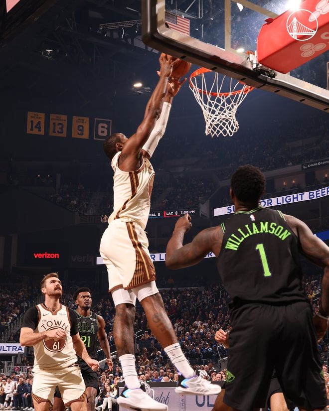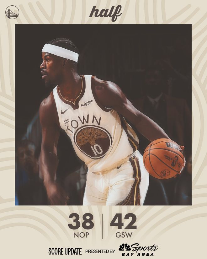 勇士隊(duì)的佩頓上半場(chǎng)得到12分和5個(gè)籃板,巴特勒得到11分、6個(gè)籃板和5次助攻;鵜鶘隊(duì)的錫安得到6分。