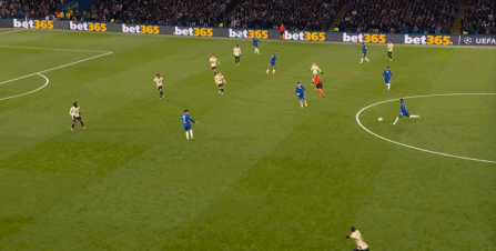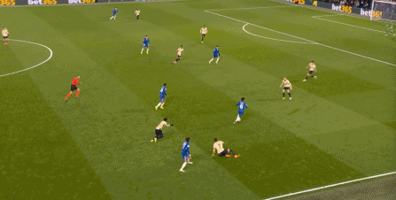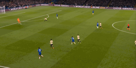 所以在攻守形勢并未逆轉(zhuǎn)的情況下,下半場的切爾西依舊占據(jù)著優(yōu)勢,可利用的空間隨著人數(shù)優(yōu)勢顯現(xiàn):