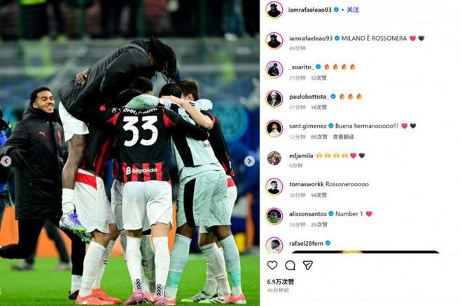 他也在賽后通過(guò)社媒曬出自己和隊(duì)友們相擁慶祝的照片,并配文:“米蘭城是紅黑色的!”