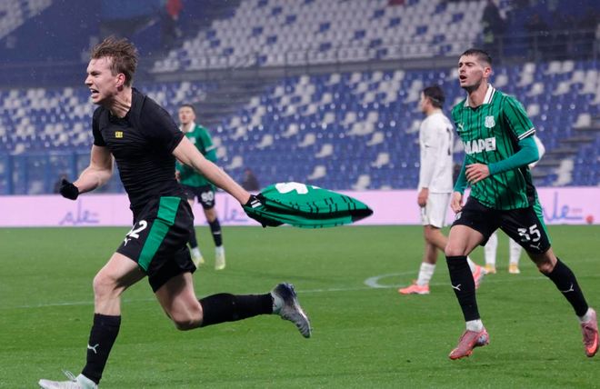 在意甲賽場,薩索洛在主場完成絕平好戲,用補(bǔ)時(shí)進(jìn)球逼平了比薩。這場比賽比薩早早就利用點(diǎn)球機(jī)會(huì)取得領(lǐng)先。但是,很快馬蒂奇就用一腳漂亮的凌空抽射進(jìn)球扳平比分。亨利克-邁斯特在第81分鐘進(jìn)球讓比薩再次領(lǐng)先。最后時(shí)刻,索爾茨維特站了出來,他打進(jìn)絕平進(jìn)球,拯救了薩索洛,瘋狂脫衣慶祝。最終的比分定格為2-2。