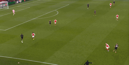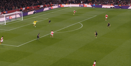 于是在換人做出的1分鐘過后,阿森納完成搶斷之后,全新的左路組合直接打穿拜仁防線,而換到右路更為舒服的馬杜埃凱打進了超出比分的第二球: