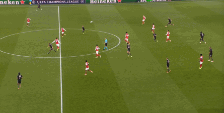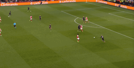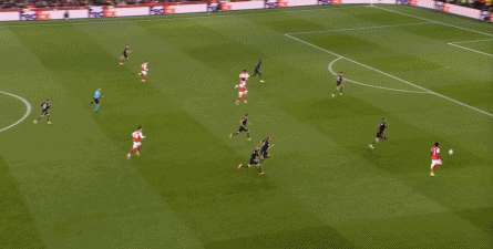 所以到了上半場末段,阿森納打出進攻已經(jīng)不難,運行起來已經(jīng)比較流暢了: