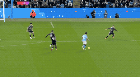 開場只有59秒,曼城就閃電領(lǐng)先。和B席做出精妙配合后,努內(nèi)斯倒三角傳中,福登四兩撥千斤,輕松將球打進(jìn)。